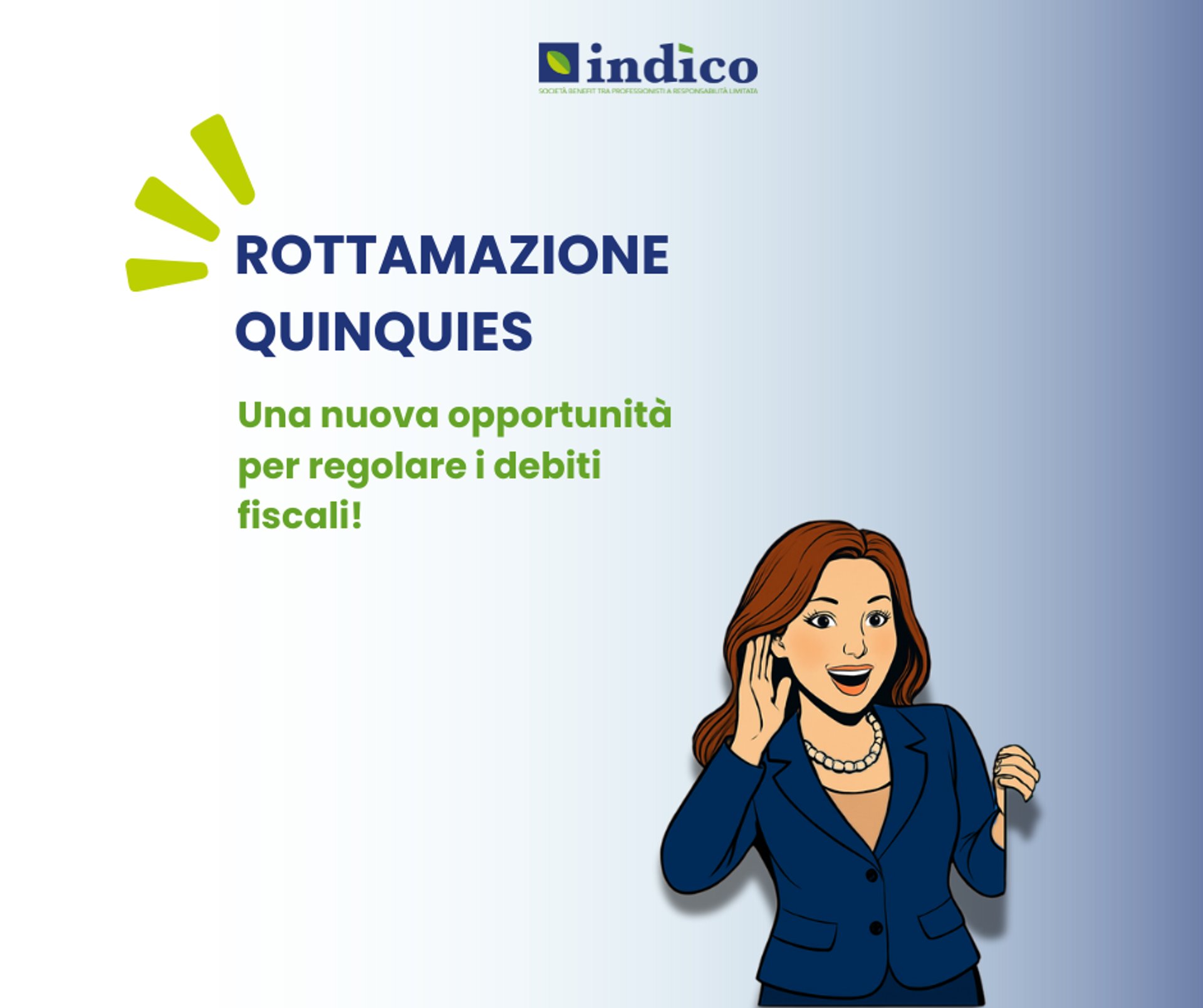 La rottamazione Quinques è una opportunità per sistemare i prorpi conti col Fisco. Occorre però affidarsi a professionisti preparati che possano indirizzare le scelte del contribuente e aiutarlo a gestire la propria posizione debitoria. Indìco Società Benefit è sempre al fianco dei suoi clienti.